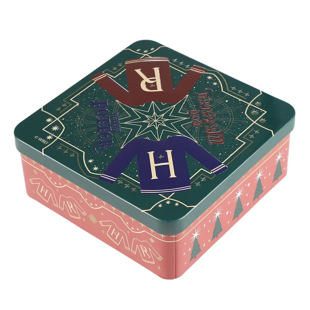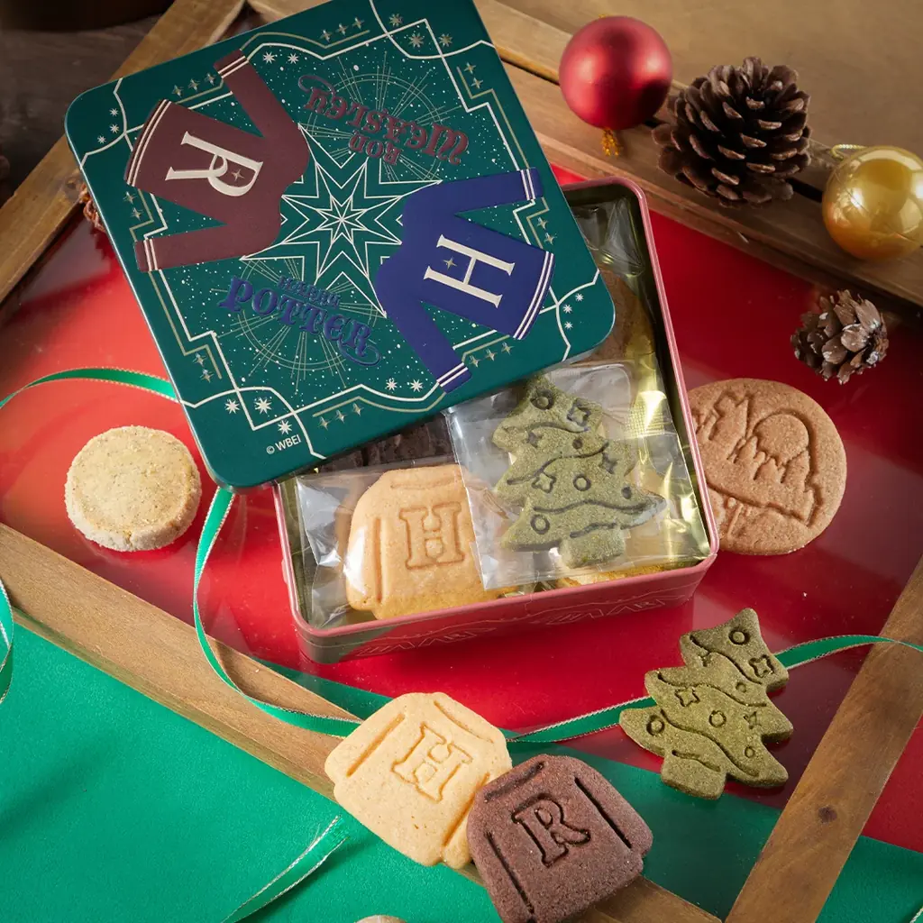 映画『ハリー・ポッターと賢者の石』に登場するセーターやクリスマスモチーフをクッキーにしたアソート缶です。缶はブリキ製で、シナモンや紅茶など複数フレーバーを組み合わせ、ホリデーシーズンのティータイム向けに設計されています。