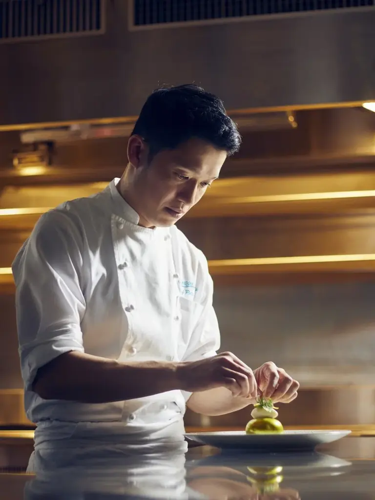 岩佐氏はエグゼクティブシェフ若月氏の右腕として星獲得にも貢献しており、2017年には若月氏とともにソンブルイユ開業メンバーとなりました。五感を刺激する繊細なデザートで知られています。