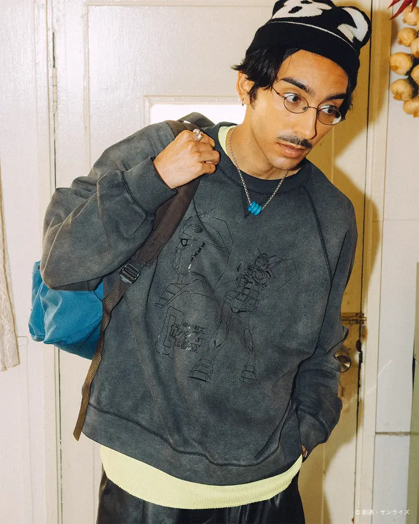 『機動戦士ガンダム』モチーフでは、RX-78-2やジオング、ザクII、ハロを主題にしたスウェットが登場します。ボディの加工やプリント表現で作品の象徴的シーンやキャラクター性を再現しています。