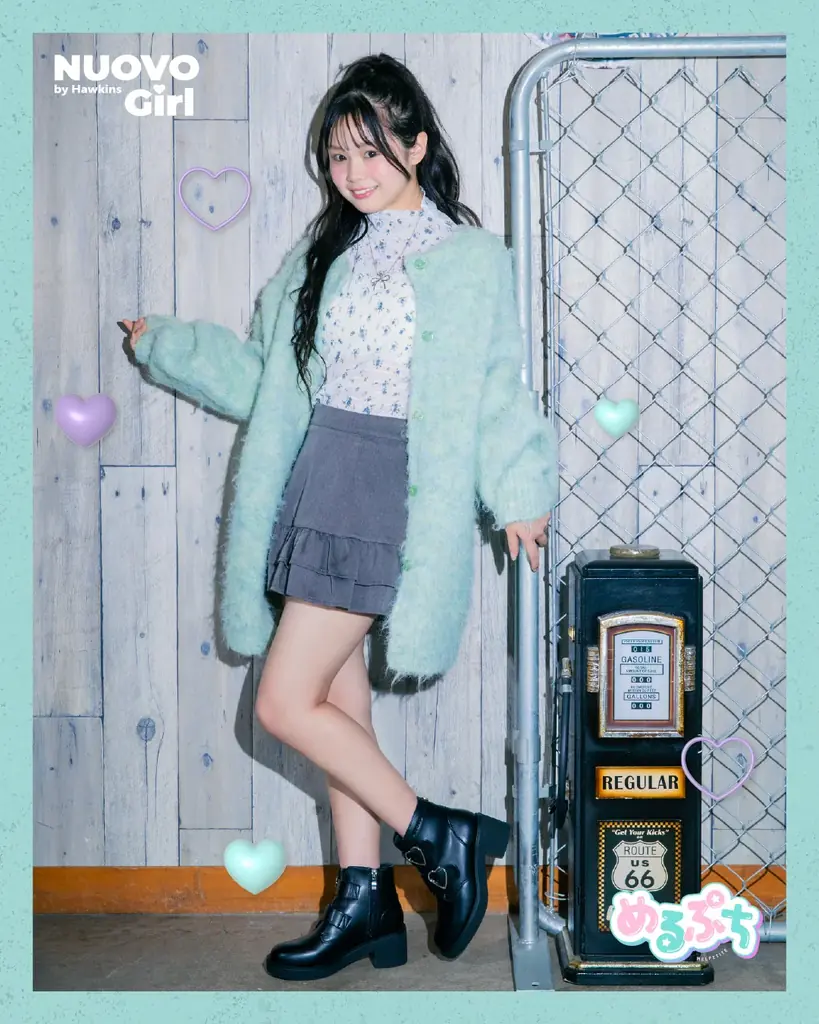 今回の特集で着用・紹介されるNUOVOGirlのブーツは、幅広いデザインと履き心地が特長です。今回ピックアップされたのは、黒を基調としたシックなタイプと、ふわもこのボアを用いたキュートなタイプで、姉妹風ビジュアルに合わせた大人っぽさと可愛らしさの両面を表現しています。