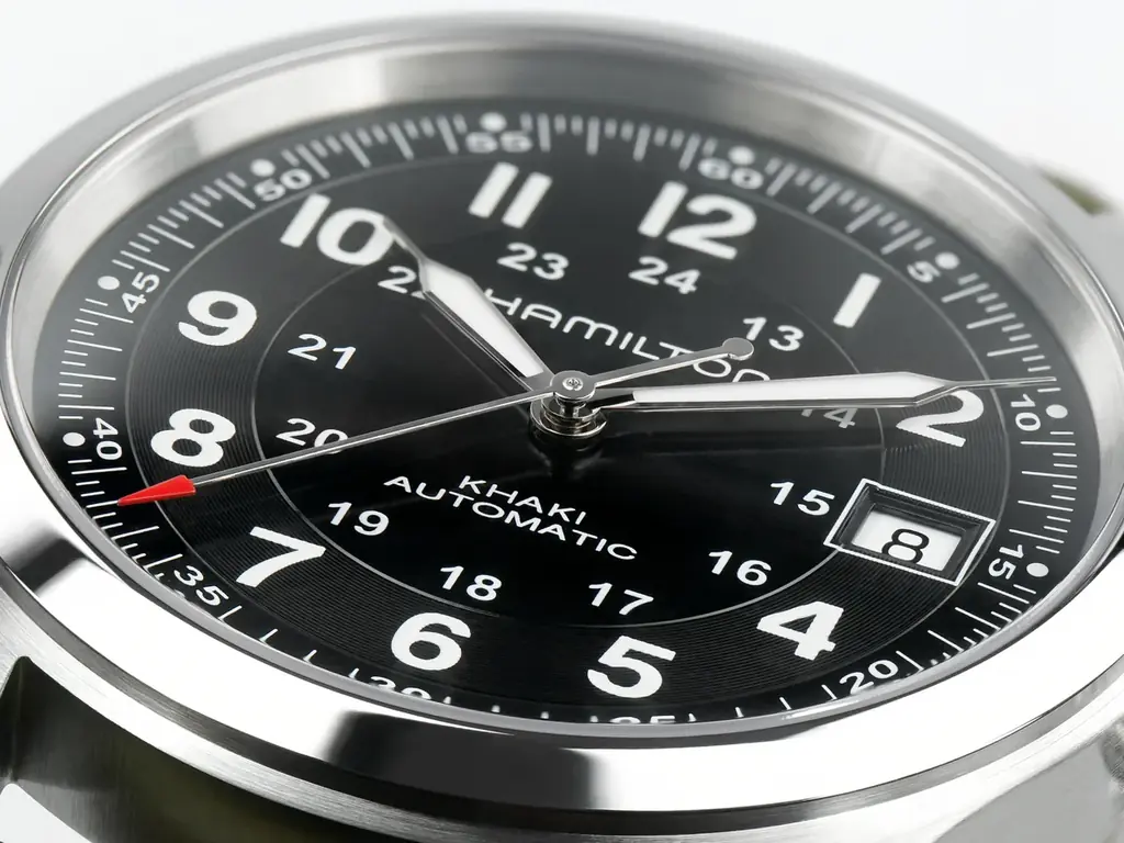 内部にはハミルトンの機械式自動巻きムーブメントH-10を搭載し、最大で80時間のパワーリザーブを誇ります。過酷な状況下での信頼性を重視した設計で、安定した駆動を長期間にわたり維持します。