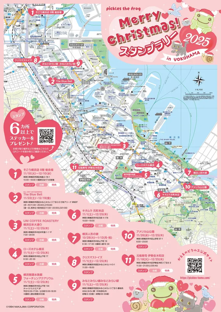 コラボに合わせて、11月1日(土)から横浜を中心とした11箇所でスタンプラリーが実施されています。対象スポットを巡り、スタンプを集めることで特典ステッカーの受け取り対象となります。注意事項や配付条件が設定されています。
