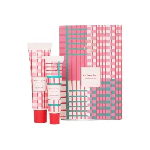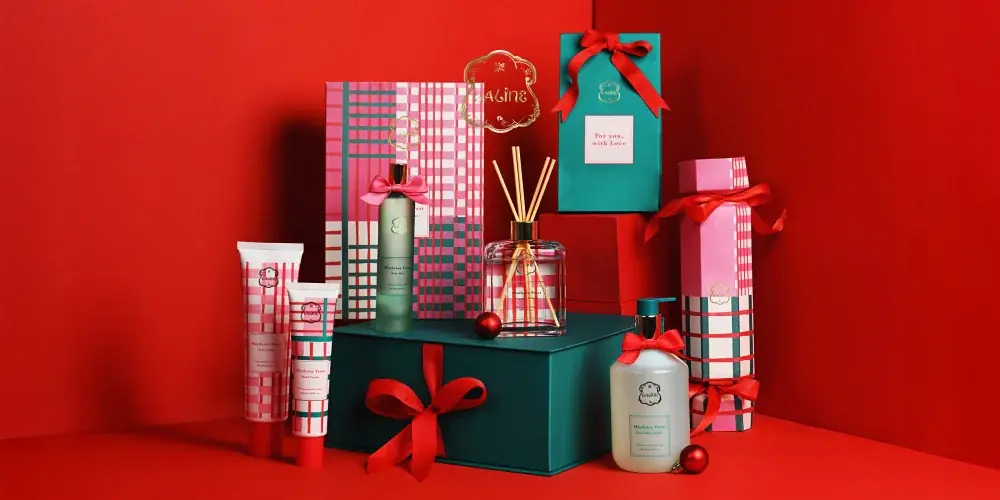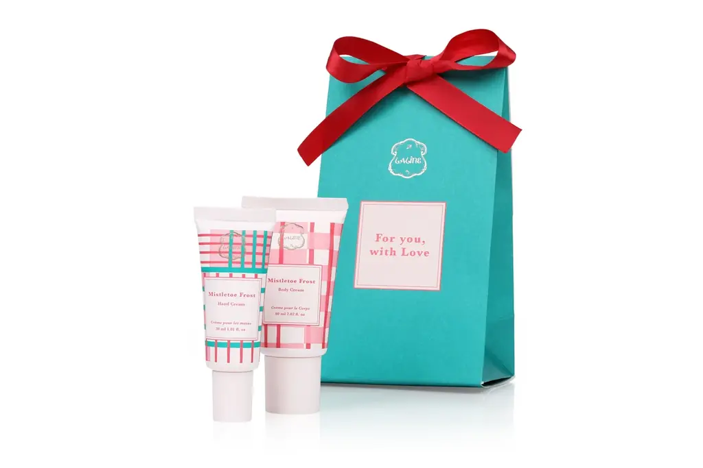 コレクションのビジュアルは、幸運の象徴であるミスルトゥ(ヤドリギ)をモチーフに、赤とピンクのチェックで彩られたホリデー限定デザインが特徴です。ギフトとしての魅力を意識したパッケージは、贈り物として渡したときに冬らしい温かみを伝える意匠になっています。