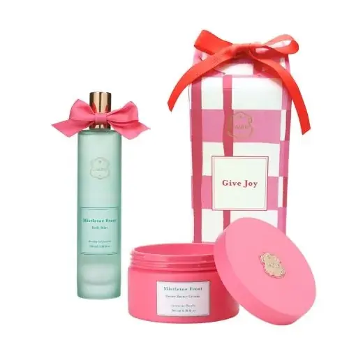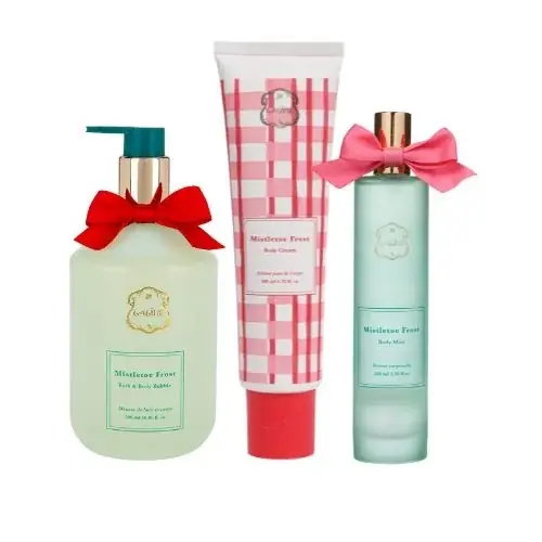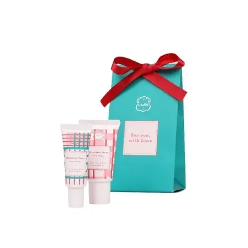 ミニサイズのボディクリームとハンドクリームをリボン付きギフトボックスでラッピング。持ち運びに便利なセットです。 - バス&ボディバブル