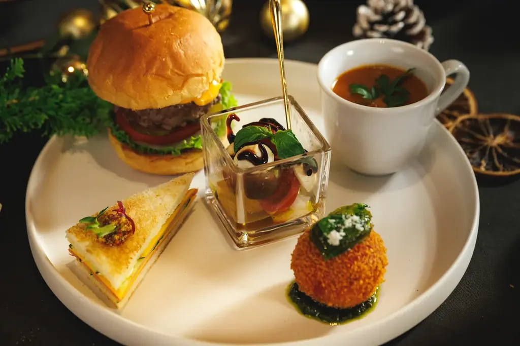| 主なメニュー | スイーツ(レモンタルト、ピスタチオのカタラーナ、ゆず香るシュトーレン等)/セイボリー(オマール海老のビスク、USDA PRIMEのミニハンバーガー等)/スコーン |