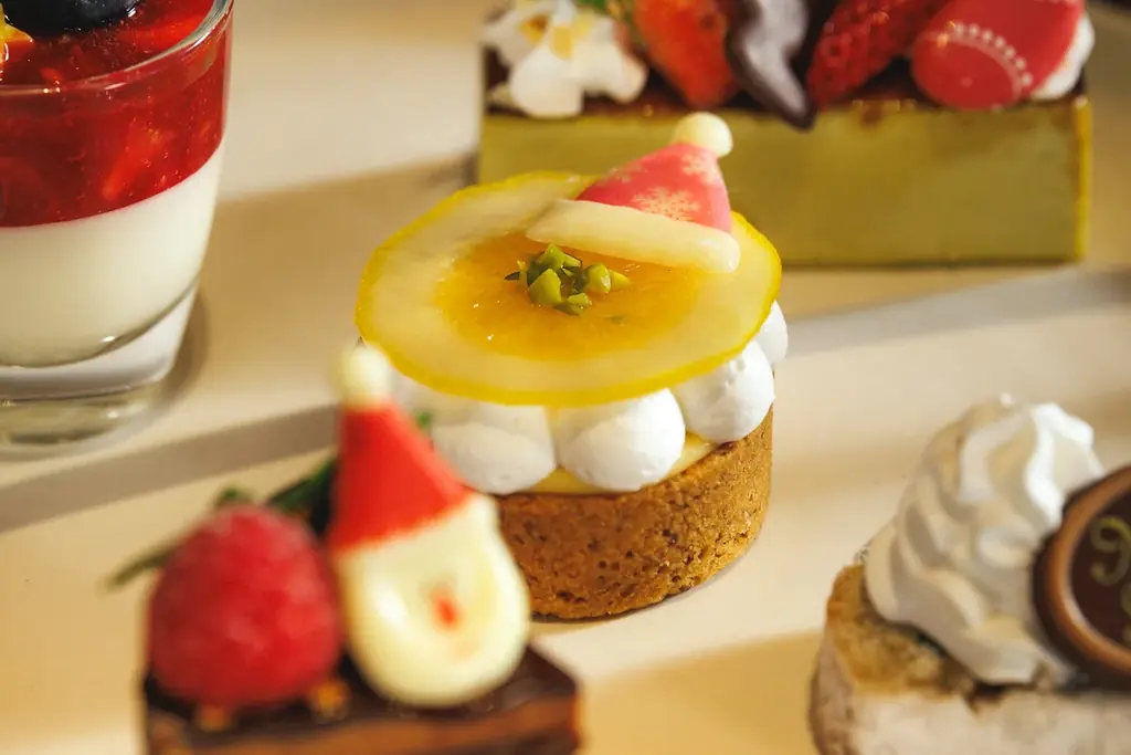スイーツはピスタチオやゆずといった冬に映える香りを中心に、セイボリーは海の旨みや肉の旨みを活かした品が揃います。ひと皿内のバランスを重視しており、甘味と塩味が交互に楽しめる構成になっています。