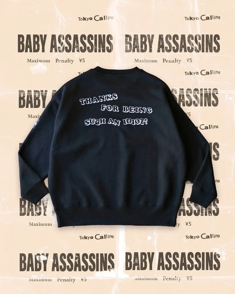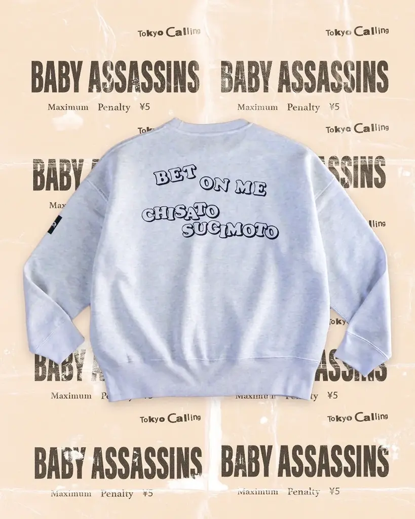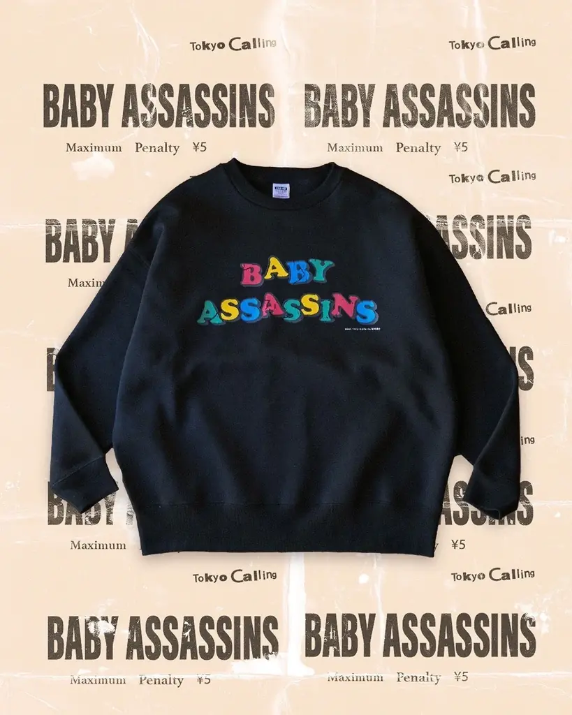 コラボは、伝説的アーティスト ジェイミー・リードの遺したコラージュ用ヴィンテージレタリングを基に制作されたことが出発点です。遺作管理を担当するジョン・マーチャント氏と協働し、英題の BABY ASSASSINS ロゴをデザイン。リード氏が持っていた反骨精神と、映画のキャラクター性が互いに共鳴した結果として今回の作品群が誕生しました。