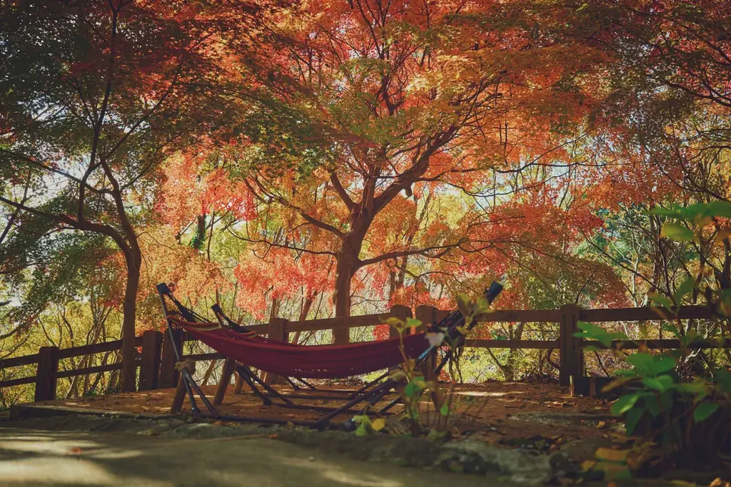園内には飲食施設としてレストランやカフェ、テラスがあり、ピクニックやハンモックでのくつろぎの時間を提供します。四季折々のハーブと花々が植栽されるため、紅葉の時期以外でも多様な自然体験が可能です。