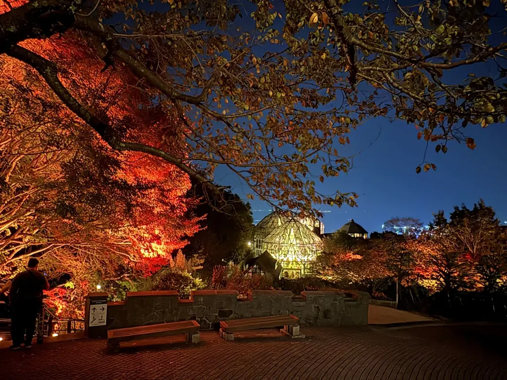 見られます。2025年から紅葉のライトアップを大規模開催し、同時に「神戸クリスマスマーケット2025」も実施。夜は紅葉イルミとマーケットが共演するので日没後の来園が特におすすめです。