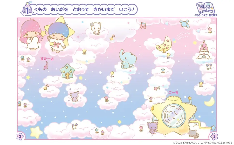 - 雲の上で遊ぶ物語。星型の雲製造機で雲を作る設定を使った創造的な遊びや、点つなぎなどが含まれます。