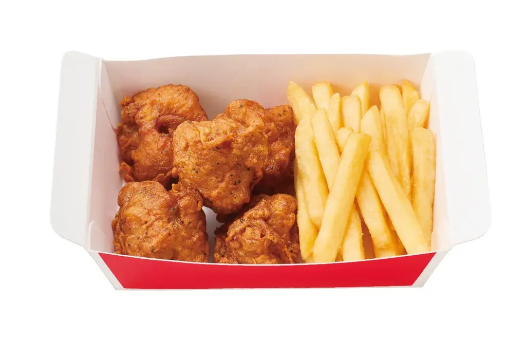 セット内容:ローストチキン(2本)または鴨レッグ(2本)/スパイス唐揚(4コ)/ポテトフライ/ミニハッシュポテト/ポップコーンシュリンプ/ウインナーソーセージ。数量限定での販売。