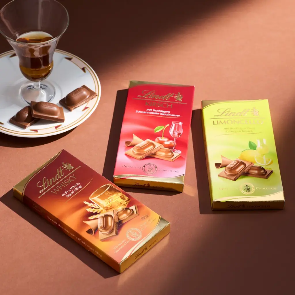 ラインナップは「リンツ チョコレート キルシュ」、「リンツ チョコレート リモンチェッロ」、「リンツ チョコレート ウイスキー」の3種で、価格は各種980円(税込)。販売期間は2025年12月1日(月)〜2026年2月15日(日)です。販売店舗は全国のリンツ ショコラ ブティック、ブティック&カフェ、およびオンラインショップ本店となります。