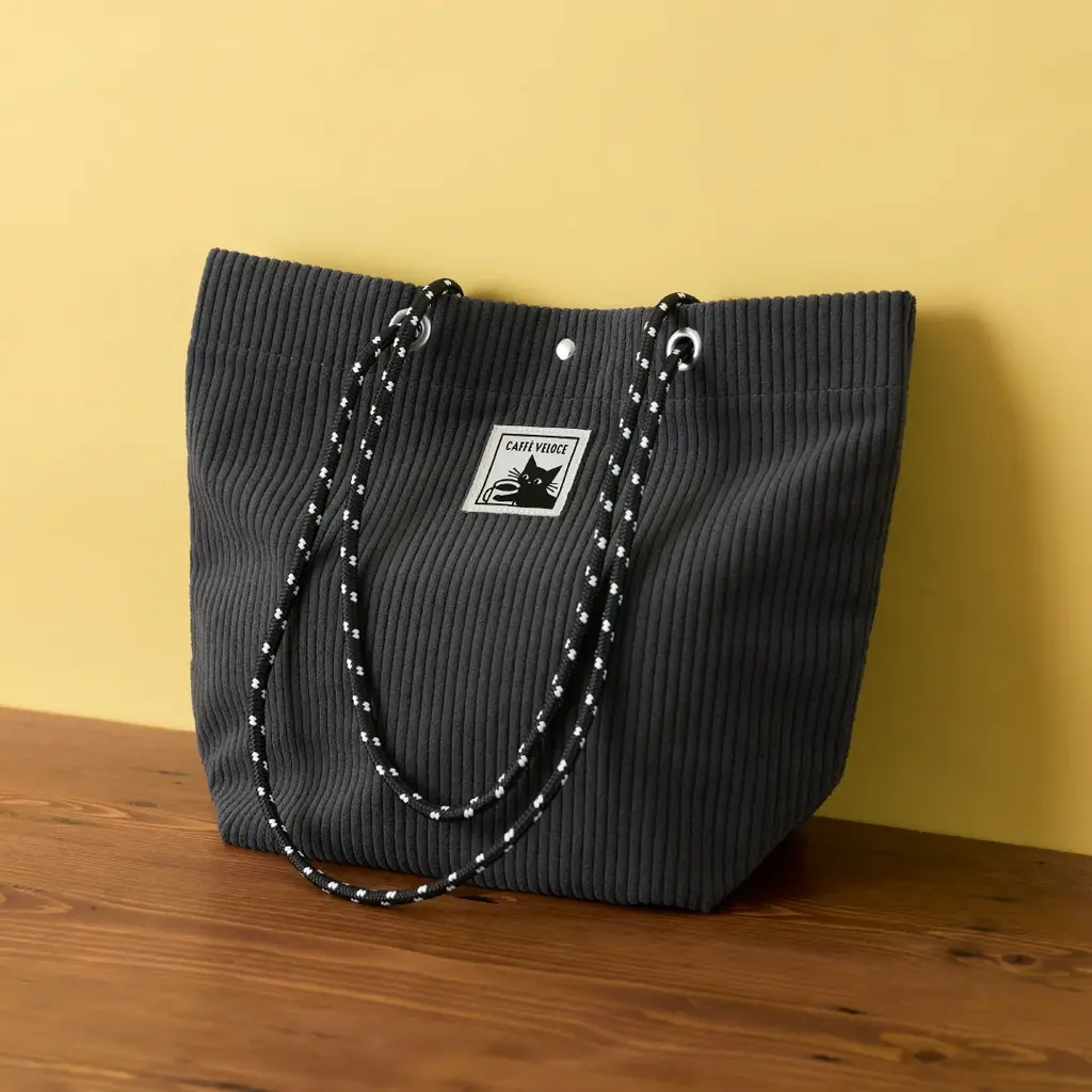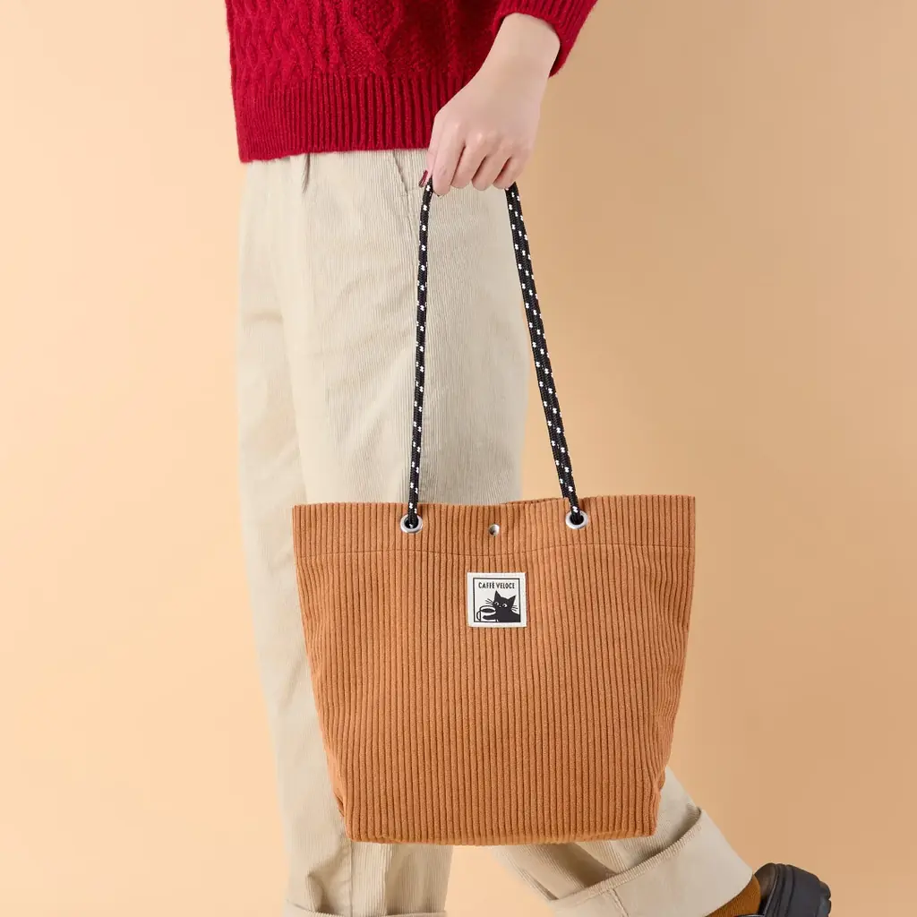 コーデュロイ素材を使用し、見た目にも暖かさを感じられるバッグです。厚手の冬アウターを着ていても肩掛けしやすいように、持ち手の長さに配慮して設計されています。