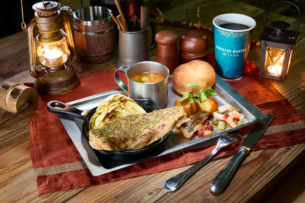 レストランは「モリバーの宴」をテーマに、焚き火を囲む食体験を再現するテーマ・レストラン形式で開催される。店内は作品世界を踏襲した“超リアル”な装飾が施され、モリバーやオトモアイルーが迎えてくれる演出が組み込まれている。訪れるゲストはハンターの「休憩」を全身で体感することが意図されている。