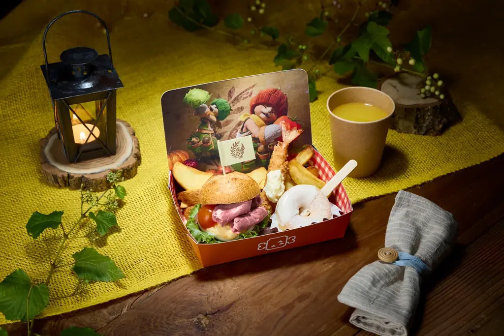 主なメニュー 焚き火料理(チキン、ゴチソウダケ、モンスターチリ)、焚き火料理(ポーク、ワイルドハーブ、シルドニンニク)、サポート部隊アイルー・キッズセット(6歳まで)、回復グレート(キウイ等)、ラバラ・バリナ(サワーチェリー&ホワイトムース)、オトモアイルーのチョコレートプリン(マグカップ付)