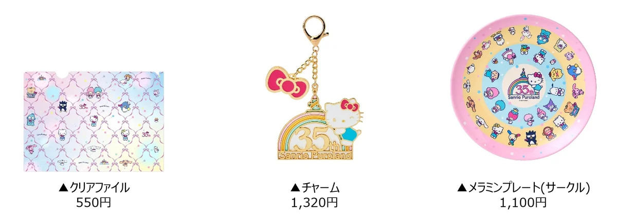 • オリジナルグッズ:クリアファイル、チャーム、メラミンプレート等(リボンモチーフ、35周年記念デザイン)