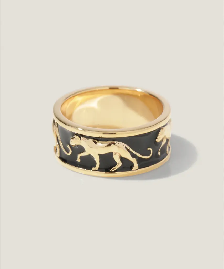 | レオパード バンド リング | 27,500円 | ブラック | シルバー925+K18 ゴールド プレーティング、エナメル | インド | 13号、15号、17号 |