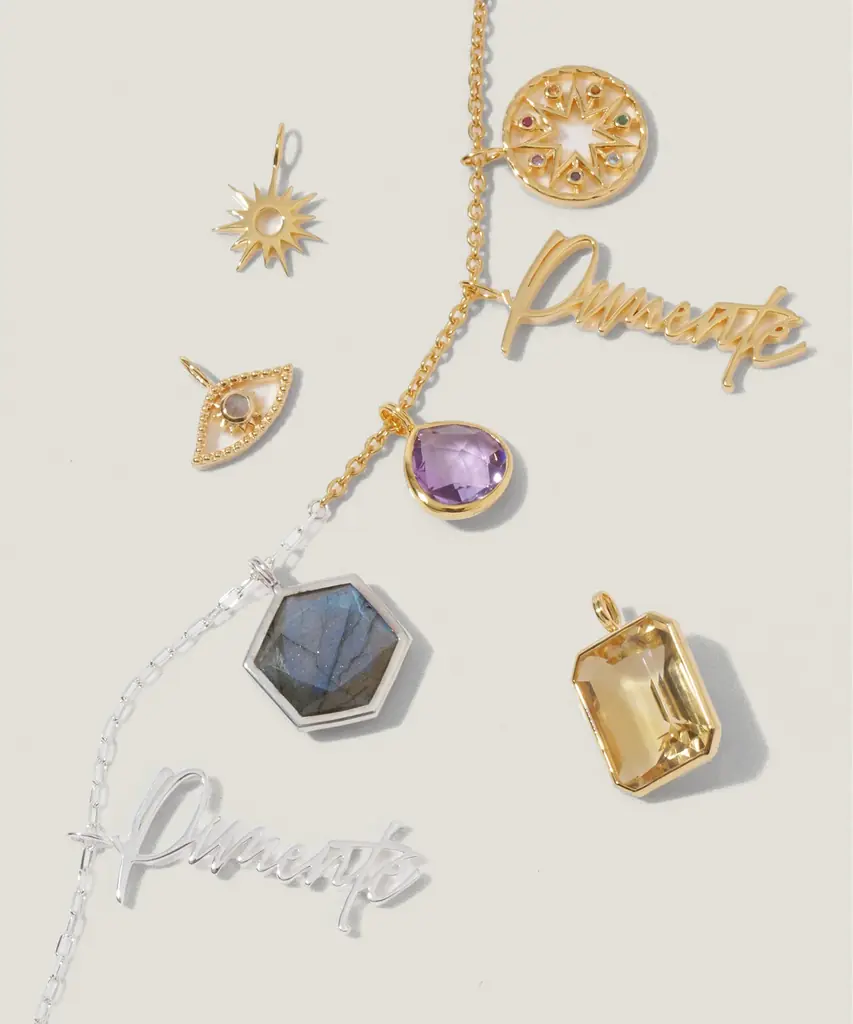 チャーム類はPIMENTÉのアイコン的なデザインから、天然石を配したものまで幅広く用意されている。複数のチャームを組み合わせることで、スタイリングの幅を広げることが意図されている点が重要である。