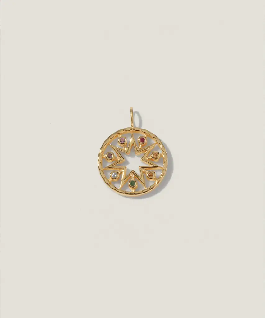 | チャクラ チャーム ラウンド | 24,200円 | ゴールド | シルバー925+K18 ゴールド プレーティング、アメジスト、タンザナイト、ブルートパーズ、エメラルド、シトリン、オレンジサファイア、ルビー | インド | — |