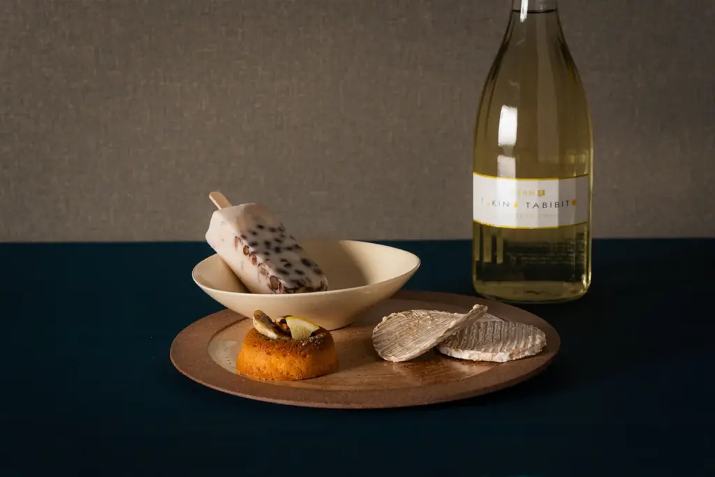 本プログラムのもう一つの柱は、ご当地の特色を生かした「焼酎スイーツセット」です。軸となるのは焼酎シロップを染み込ませた洋菓子のサバランで、そこに地域の銘菓やアイスを合わせ、湯上がりに適した味わいの変化を愉しむ構成です。
