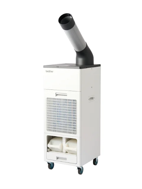 オフィシャルサプライヤーとしてブラザーが提供する製品は据置型スポットクーラーPD-7100Fです。PD-7100Fはブラザーのスポットクーラーシリーズ「PureDrive(ピュアドライブ)」に属し、同社独自の2段階気化冷却技術TwinAqua(ツインアクア)を採用した製品です。