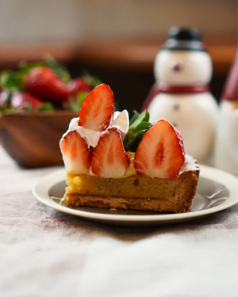 • 仕様:完熟ミガキイチゴを20粒使用。国産小麦・全粒粉・きび砂糖で焼き上げたタルト生地の上に、ラム酒風味のアーモンドダマンドとカスタードを重ね、完熟いちごをたっぷり盛り付ける。いちごそのものの味をまっすぐ楽しめる構成。