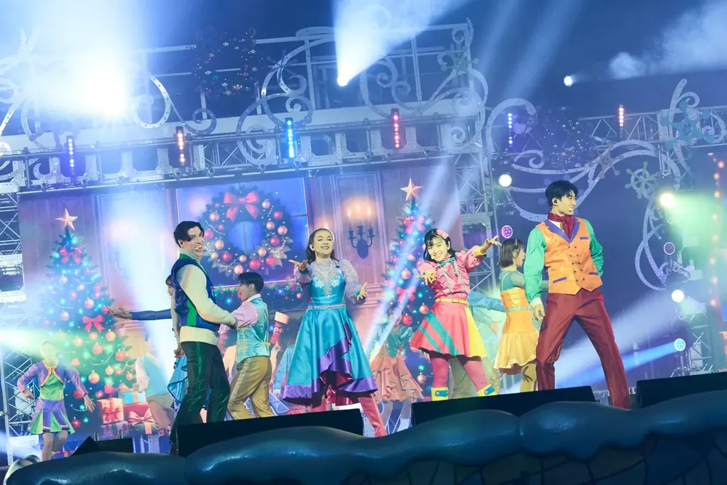 このショーは、実力派シンガーやダンサーによるクリスマスソングやダンス、巨大スクリーン映像、キャンドルやランタンの光などを組み合わせた演出が特徴だ。ステージにはハローキティ、スヌーピーとチャーリー・ブラウン、エルモやセサミストリートの仲間たちも登場し、心温まるストーリーを展開する。