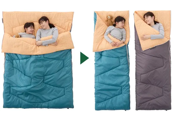 - 分離使用:個別の寝袋として使用し、個々のスペース調整や洗濯管理を容易にする。
