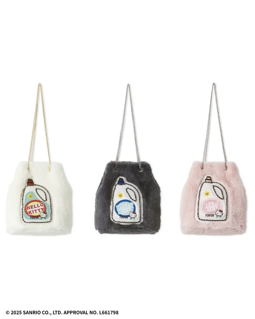 グッズ類はチェーンバッグ、トート、スクエアバッグ、ぬいぐるみショルダー、エコファー巾着、缶詰モチーフのバッグなど、見た目の遊び心と実用性を両立した設計です。素材にはエコファー、フェイクレザー、糸刺繍、スパンコール、グリッターなどを採用しています。