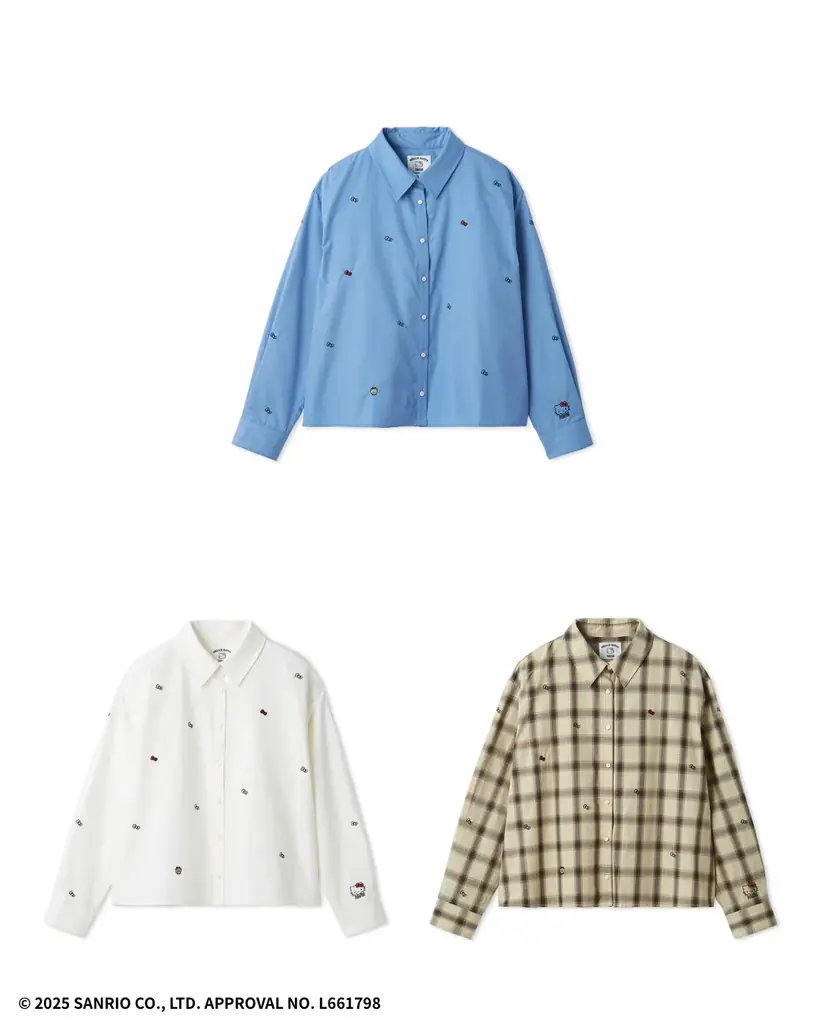 | Item1 | HELLO KITTYリボン刺繍シャツ | ¥25,300 | BLU,WHT,BEG | F | リボンモチーフ散りばめ、タイニーチャム刺繍、袖口にロゴとハローキティ刺繍 |