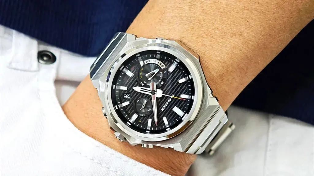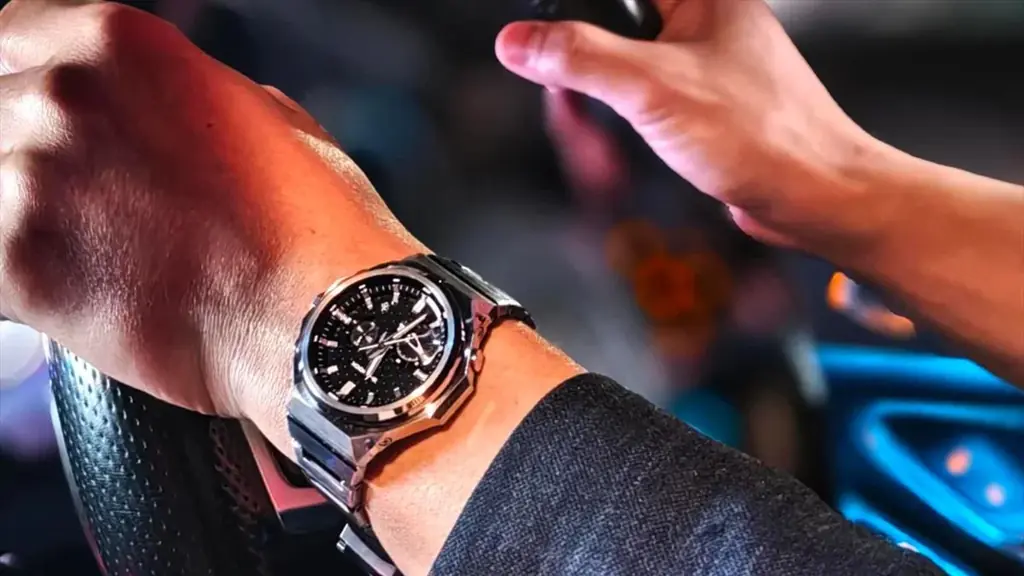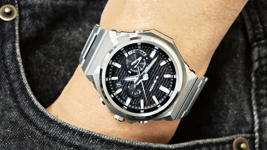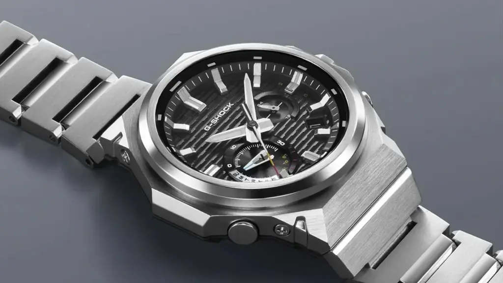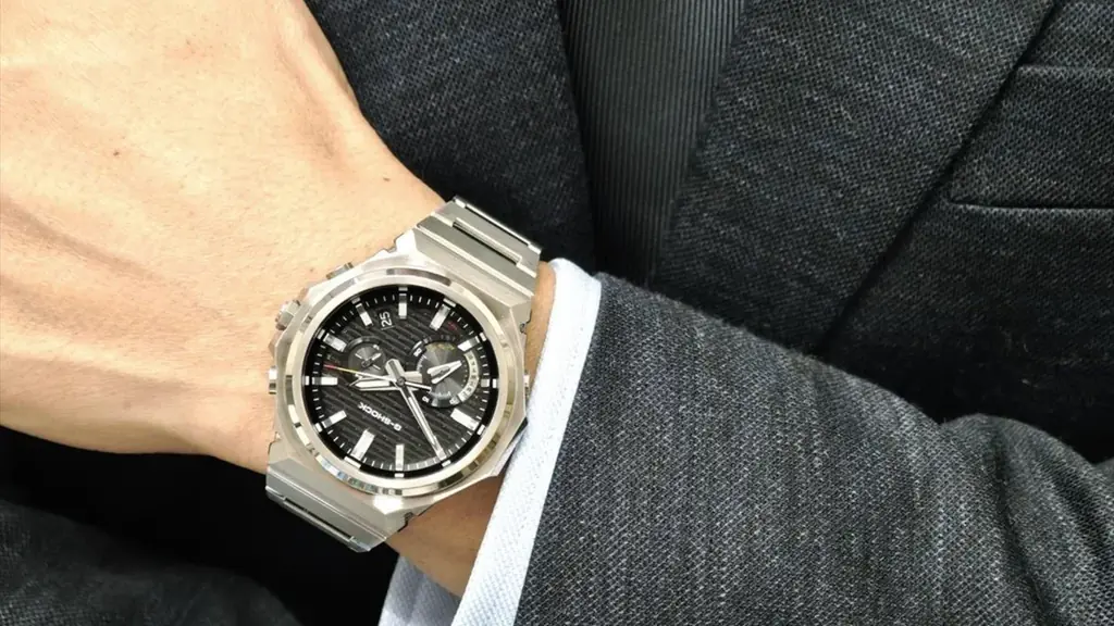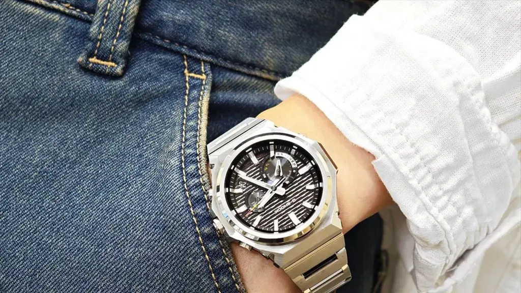 GST-B1000D-1AJFはビジネス、カジュアル、アウトドアといった多様なシーンを想定したオールラウンド・タイムピースとして設計されています。レンガパターンなどのスポーティな意匠を残しつつ、ミニマルな質感でフォーマルな装いにも馴染むバランスを目指しています。