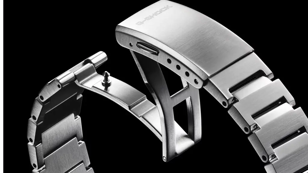 ロゴを排しても直線や円形のヘアライン、DW-5000C由来のベゼル造形でG‑SHOCKらしさを維持。メタルベゼルとカーボン強化樹脂の組合せで耐衝撃性も確保されています。