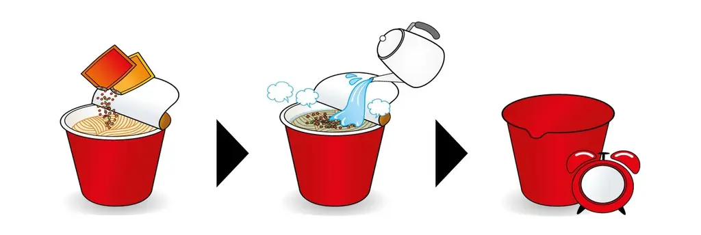 - フタを半分まではがし、粉末スープ2種を入れます。