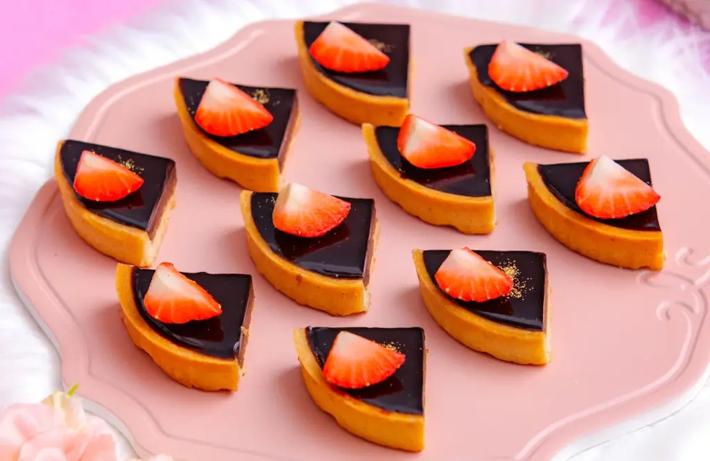 - チョコレートタルト:香ばしいタルト生地にチョコレートガナッシュといちごを重ねて提供。サクッとしたタルトと甘酸っぱい組合せで構成。
