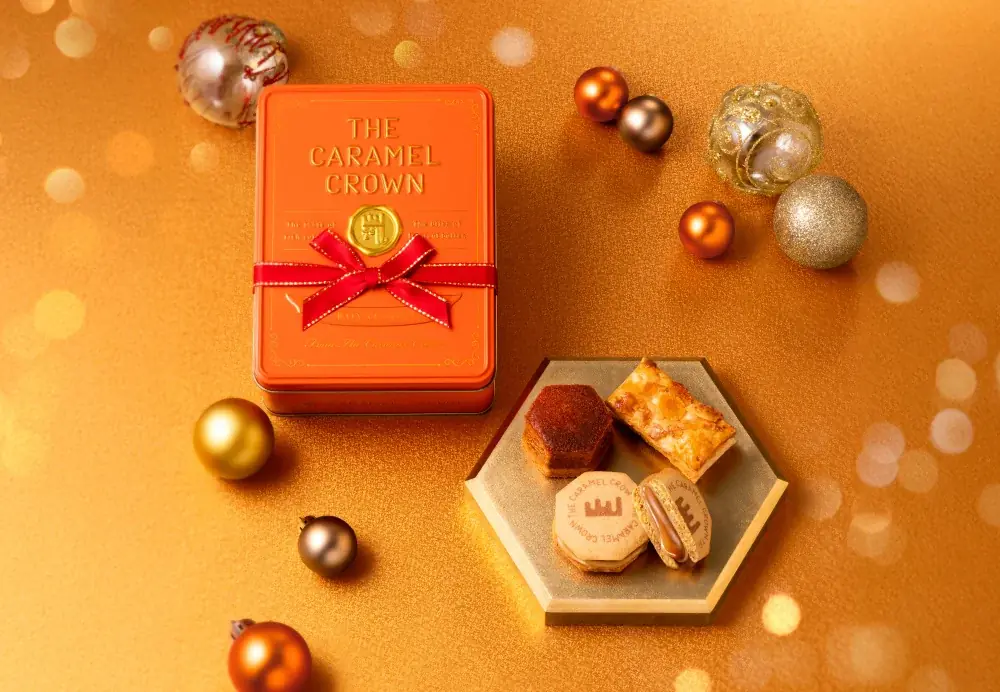 THE CARAMEL CROWNは「とろけるキャラメルと、溢れるバターの香りの出会い」をコンセプトに掲げる新スイーツブランドです。ブランドの象徴として“黄金に輝くキャラメルの王冠”をモチーフにした世界観を持ち、2025年4月に阪急うめだ本店へグランドオープンしています。