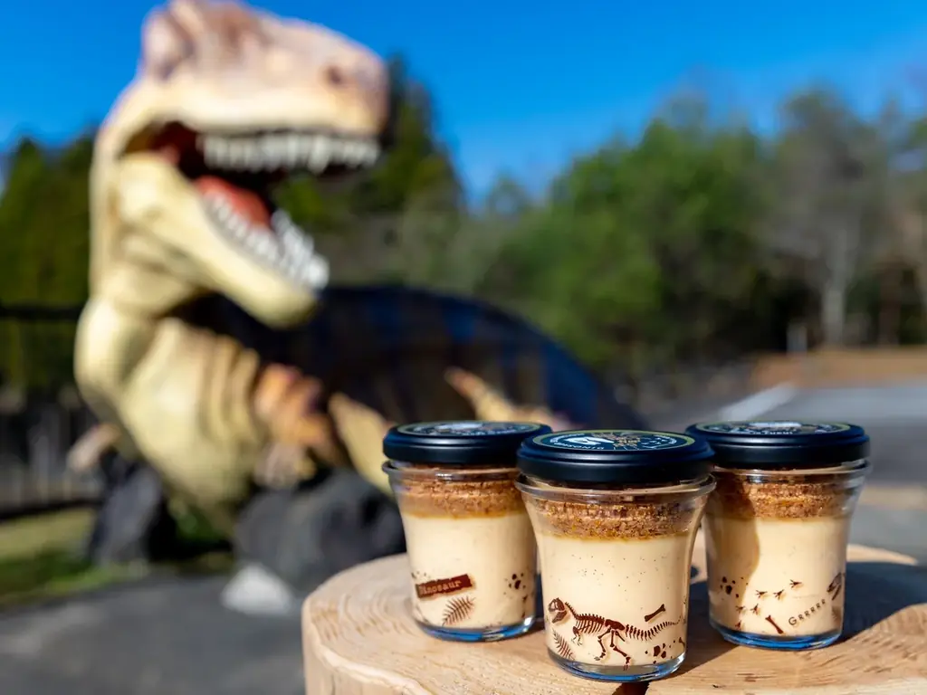 - 福井県:恐竜発掘プリン ★※1日50個限定。恐竜チョコがプリンの中に隠れており、全11種類のうちいずれか1種類が入る仕様で“発掘”の楽しさを演出。