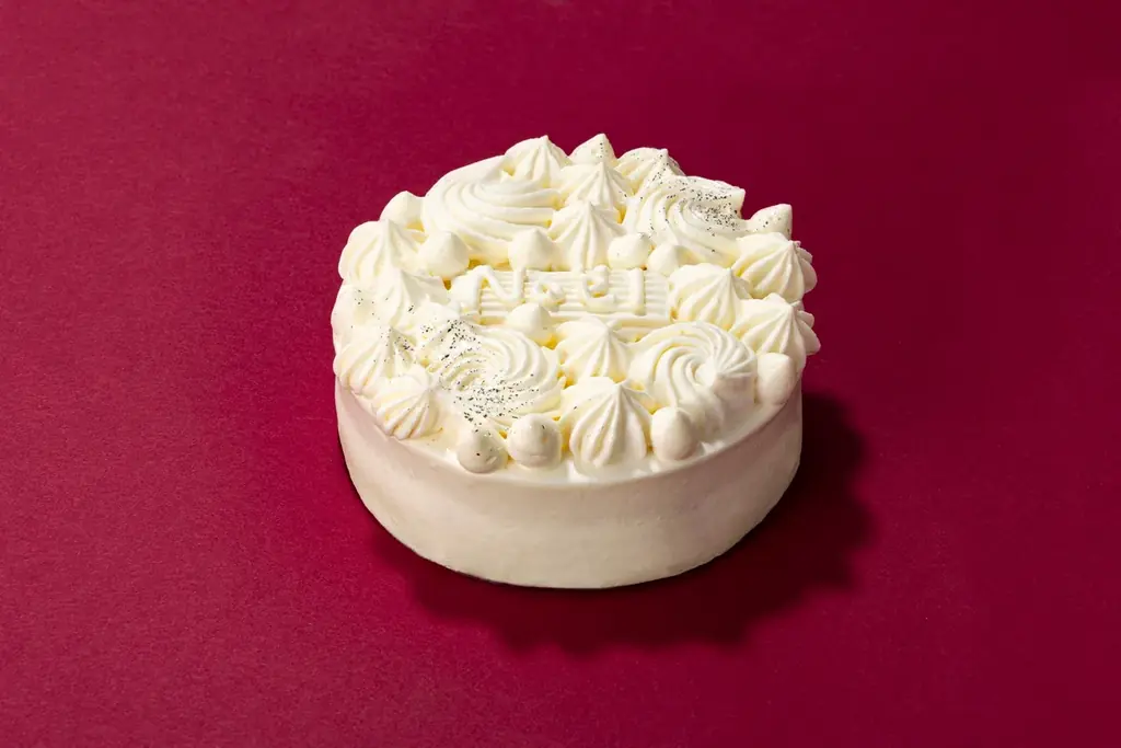 特徴:創業当時から愛される「フォレ・ブランシュ」をグランスタ限定デザインで提供。雪のように儚い口どけのオリジナルクリームとダークチェリー、繊細な絞りで装飾された一台。6号サイズ(直径約18cm×高さ約5.7cm)は10,800円でも取り扱いあり。