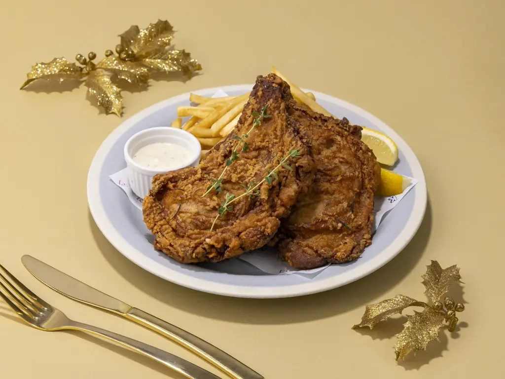 特徴:独自ブレンドのスパイスで味付けした骨付きチキンを丁寧に揚げ、旨味を閉じ込めた一品。店頭予約:12/1~12/25。WEB予約:11/10~12/23。受取:12/1~12/25。店頭販売:12/1~12/25。