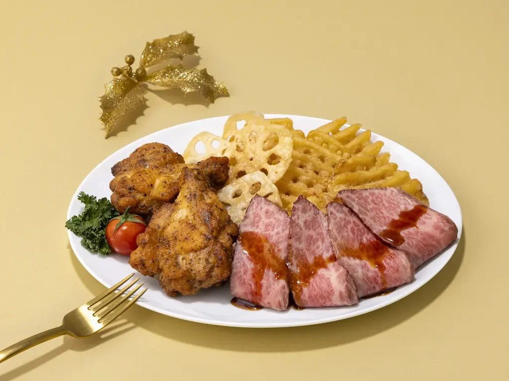特徴:低温でじっくり焼き上げたステーキと、黒胡椒を効かせた手羽のセット。店頭予約:11/4~12/19。WEB予約:11/10~12/19。お渡し:12/20~12/25(※12/19予約分は12/21~12/25にて承る)。店頭販売:12/20~12/25。