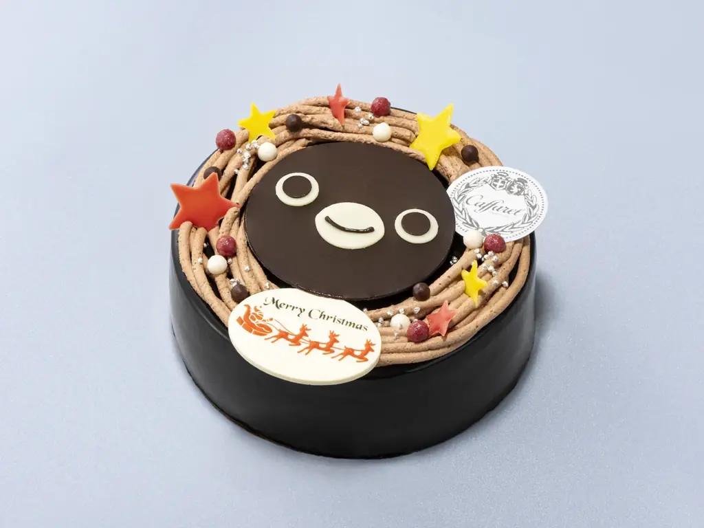 特徴:Suicaのペンギンとクリスマスツリーの共演。コロンバン伝統のバタークリームを抹茶味で仕上げ、プリントマカロンのSuicaのペンギンをあしらったデコレーションケーキ。店頭予約は10/1~、WEB予約は11/4~。
