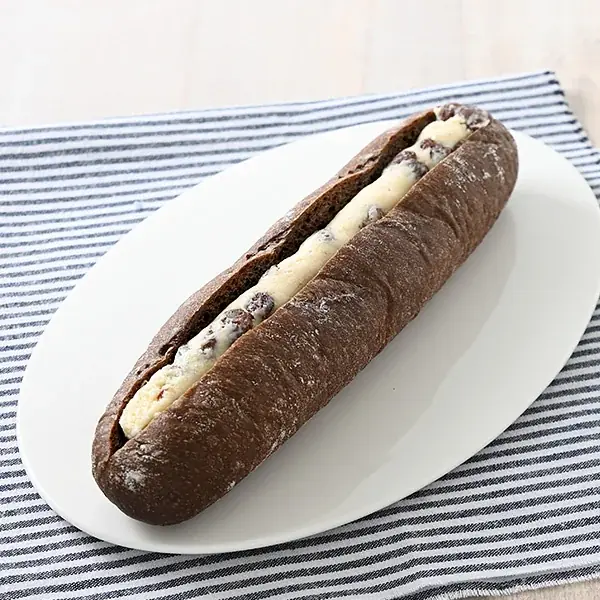 パンカテゴリには〈ラムレーズンバターメロンパン〉と〈ラムレーズンショコラフランス〉の2種類が用意されています。いずれも生地とフィリングにラムレーズンを生かした“食べやすい大人の味”がコンセプトです。