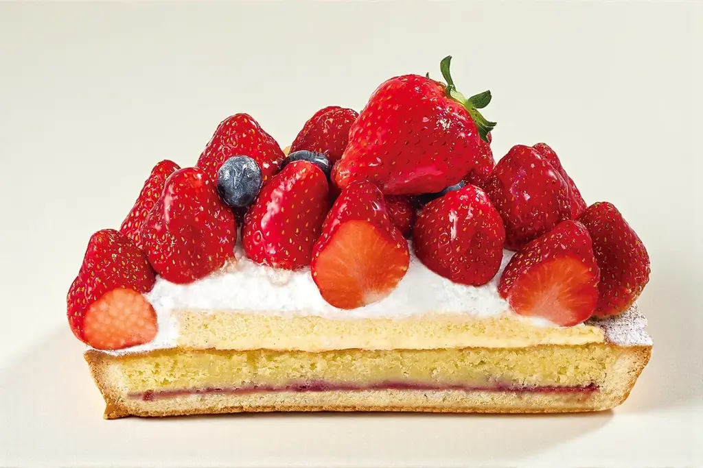 トッピングには千葉県産いちごをたっぷり使用し、濃厚な生クリームとフレッシュないちごの相性を重視した一品です。きめ細かいスポンジと合わせて「生クリームの旨み」を最大限に引き出しています。