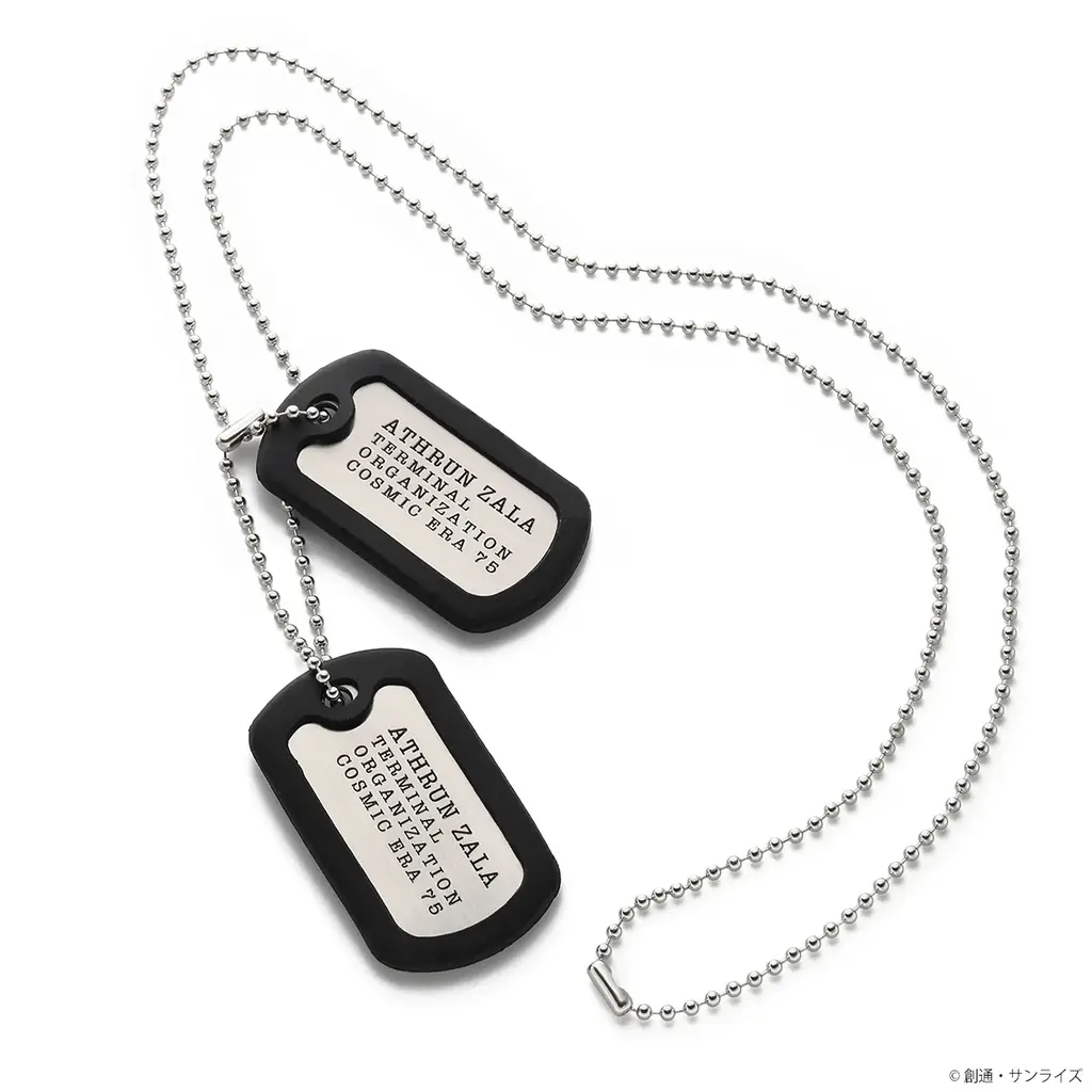 ドックタグはアスラン・ザラモデルとカガリ・ユラ・アスハモデルの2種類で、フチを守るゴムのサイレンサー付きの仕様です。2枚セットでボールチェーンが付属します。プレートは亜鉛合金、カバーはシリコン、チェーンは鉄製です。
