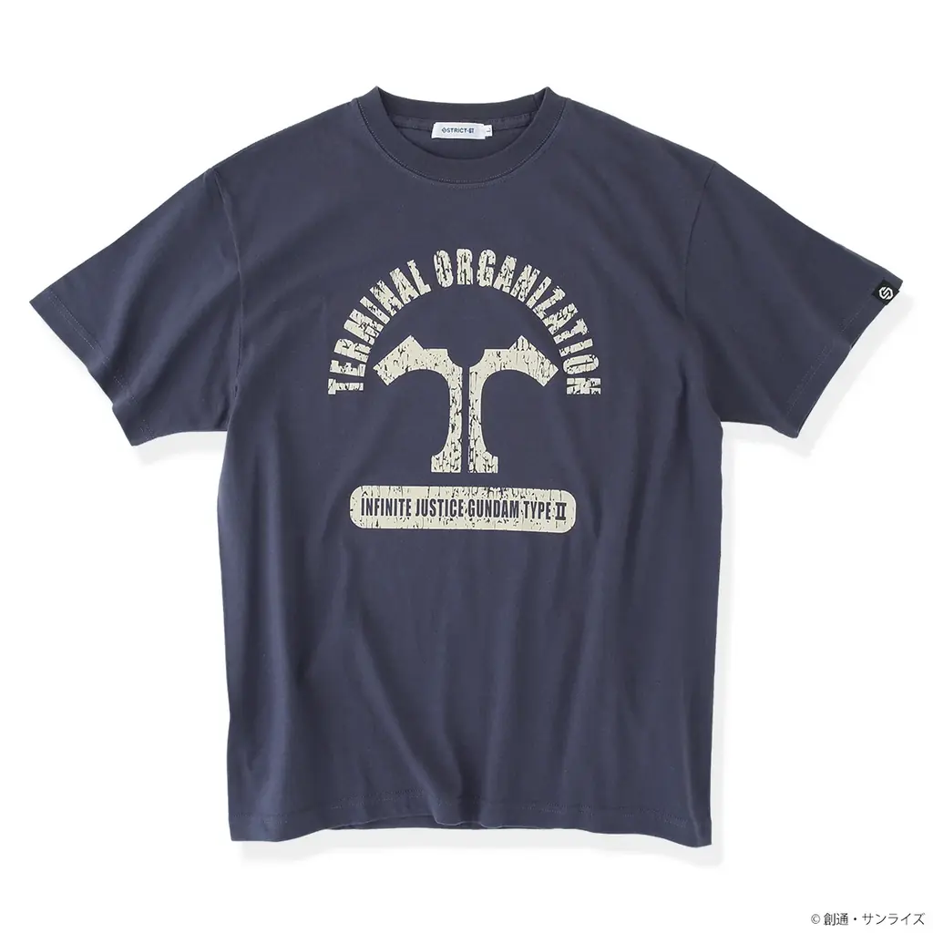 グランジ風(カスレ調)にデザインされたターミナルマーク柄とオーブマーク柄のTシャツです。描き下ろしイラストではアスラン・ザラ、カガリ・ユラ・アスハが着用しており、MA-1ジャケットとのコーディネートが想定されています。素材は綿100%で、価格は各4,730円(税込、送料手数料別途)です。