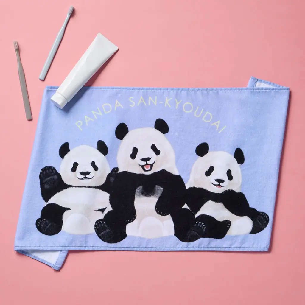 やさしい手ざわりの綿100%フェイスタオル。パンダのイラストをあしらい、パンダの体を撫でるような触感を目指した素材感。