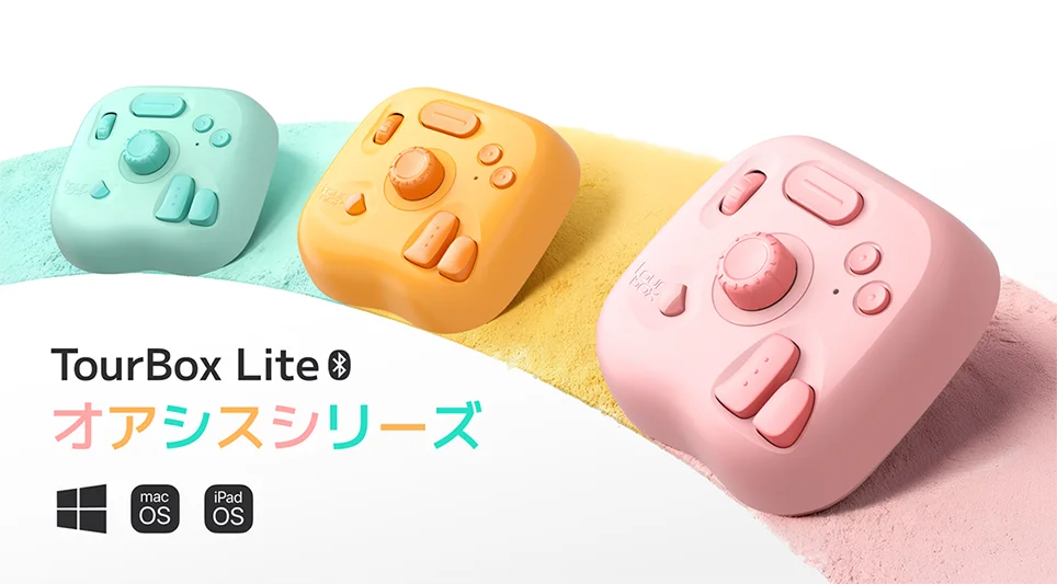 TourBoxはハードウェア側からショートカットや操作割当を行うことで、ペンタブレットやキーボードだけでは実現しにくい操作の短縮を可能にします。複数のモデルにより、初心者向けから上級者向けまで選択肢が用意されています。