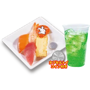 かっぱ寿司では同時期に「ワクワク!おこさまメニューキャンペーン」も実施しています。おこさま向けの複数メニューが特別価格で提供され、カプセルトイコイン1枚付きの設定(おこさまドリンクバーには付かない)です。こちらも店内飲食限定で、一部店舗では価格が異なります。