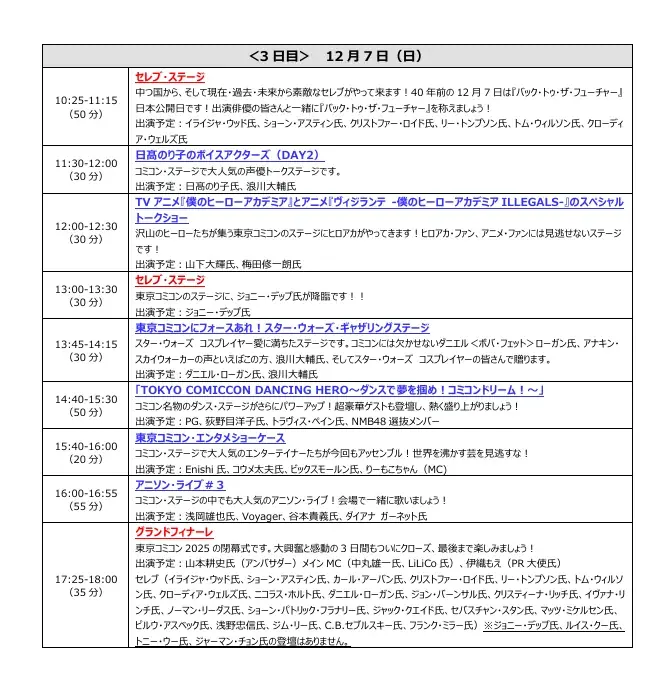 【東京コミコン2025】ジョニー・デップ氏、クリストファー・ロイド氏、浅野忠信氏、セバスチャン・スタン氏、ノーマン・リーダス氏ら豪華セレブが登壇!ステージスケジュール情報が発表 画像 2