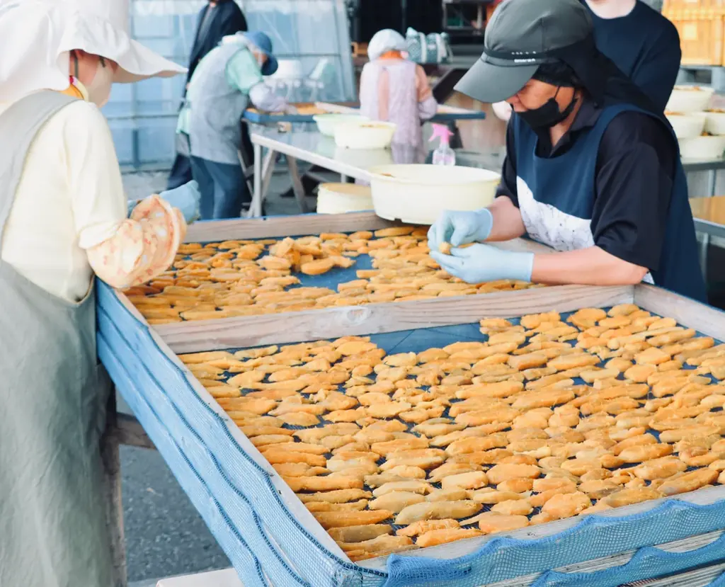 製造工程では、犬用に合わせて天日干し期間を通常より長く設定し、噛みごたえと味わいを両立させています。宮崎の工場では職人による手作業での仕込みが行われ、丁寧な天日干し工程を経て製品が完成します。
