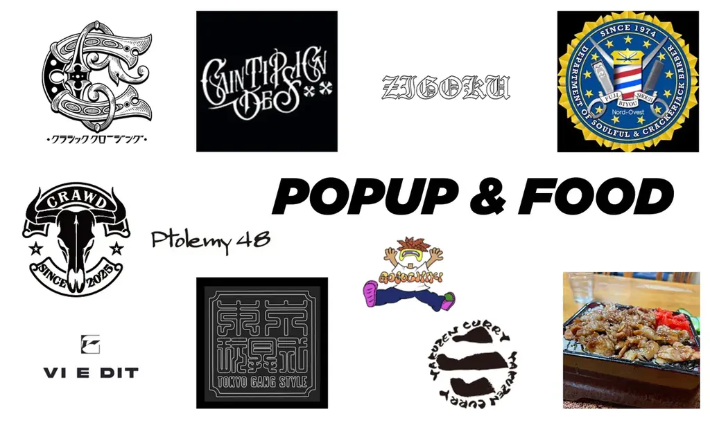 | POPUP 出展 | Classic Clothing、Gain Tip Design、ZIGOKU、ふじ美容商事、CRAWD、Ptolemy 48、VI E DIT、東京玩具式 |